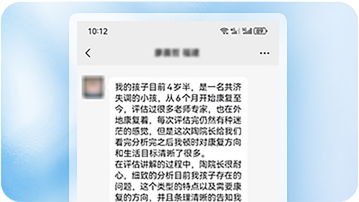 我的孩子目前4岁半,是一名共济失调的小孩,从6个月开始康复至今,评估过很多老师专家,也在外地康复着,每次评估完仍然有种迷茫的感觉,但是这次陶院长给我们看完分析完后我顿时对康复方向和生活目标清晰了很多。