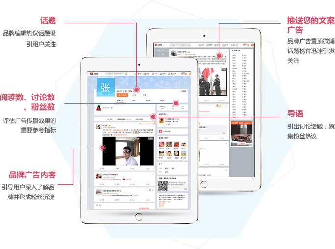 以微博话题形式发布品牌广告,轻松上头条,迅速提升品牌曝光量,形成舆论场。