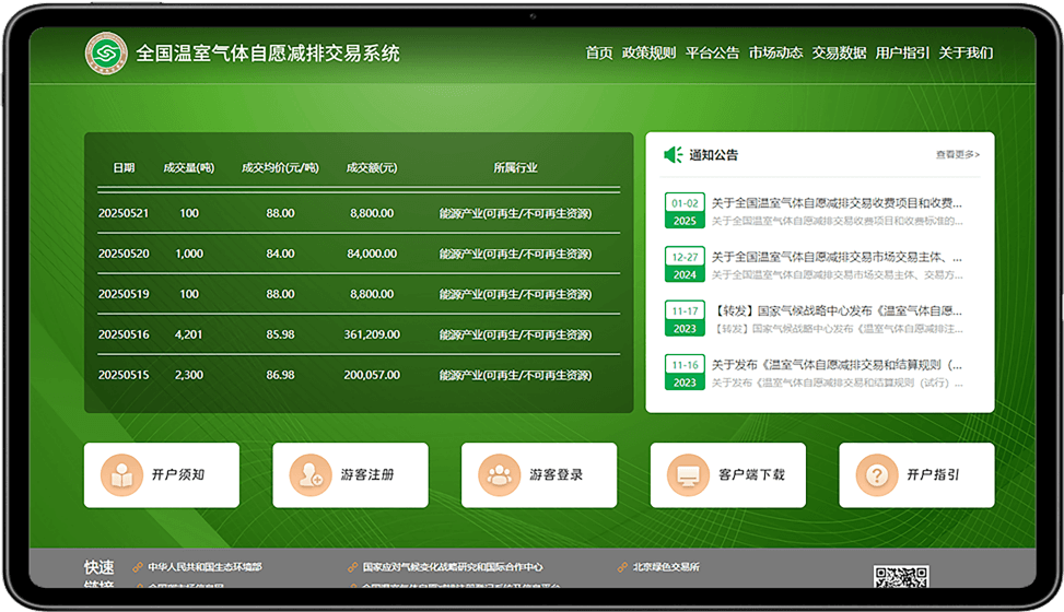 温室气体自愿减排交易是利用市场机制激励社会主体自主参与减排的碳抵消制度,通过允许非强制减排主体(企业、机构或个人)开发减排项目,经科学核证转化为可交易资产,供需求方购买抵消碳排放,推动全社会绿色转型,支持可再生能源、林业碳汇、甲烷减排、节能增效等减碳增汇项目发展。义鼎天集团依托北京绿色交易所这一全国温室气体自愿减排交易系统的核心运行管理平台,深度参与CCER交易与结算服务,通过规范化的市场机制保障减排项目高效核证及碳资产流通,助力全国碳市场稳健发展,
