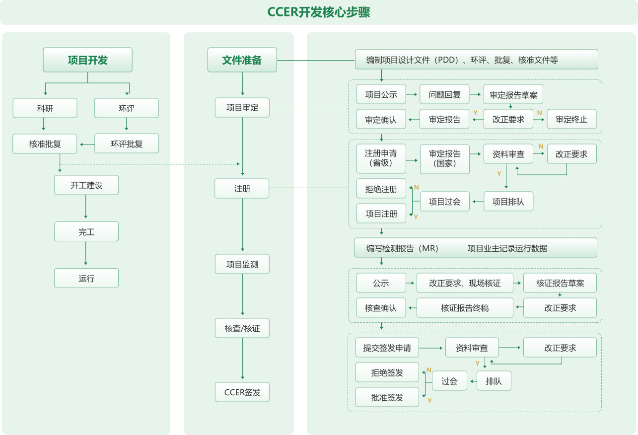 碳资产开发(尤其是项目碳资产)是从项目设计到获得核证减排量的全流程,需遵循特定机制规则(如国内CCER方法学、国际CDM规则),核心步骤如下: